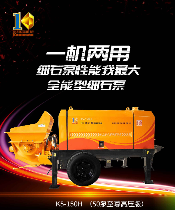 湖南科瑪森品牌就是一家專注技術(shù)為主,科技創(chuàng)新發(fā)展企業(yè),其液壓、機(jī)電、機(jī)械制造技術(shù)在隧道領(lǐng)域混泥土泵送噴射機(jī)械2016-3015/3016系列歷經(jīng)500套應(yīng)用,技術(shù)非常成熟可靠,科瑪森制造細(xì)石泵有著多項(xiàng)技術(shù)行業(yè)靠前,克服液壓系統(tǒng)卡閥、油溫高其他細(xì)石泵老毛病。K5-150H(50型細(xì)石泵至尊版)一小時(shí)理論泵送40方,比其他的品牌細(xì)石泵泵送放量大,每天經(jīng)濟(jì)效益收入快人一步,另可泵送10-35mm大顆粒石子,產(chǎn)品性能卓越,壽命長優(yōu)點(diǎn)。