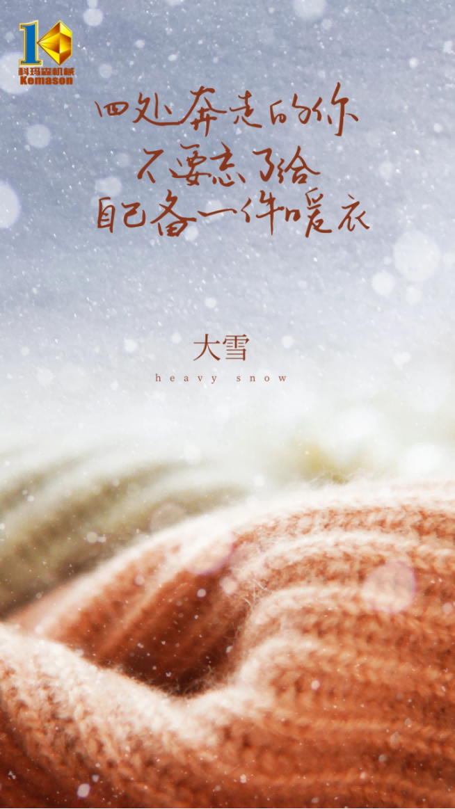 12月7日是二十四節(jié)氣之一的大雪,也是冬季的第三個節(jié)氣,標志著仲冬時節(jié)的開始,大雪,顧名思義就是下大雪的日子,這時我國大部分地區(qū)的低溫度都降到了0°C一下,雖然未降雪,但溫度缺已很低。科瑪森細石混凝土泵在這里提醒大家:注意身體,多喝熱水,添衣保暖。