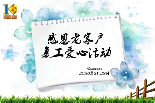 2月29日是2020年特殊的一天,四年才出現(xiàn)一次的29號(hào),也給科瑪森帶來了新年的新希望。截至今日,春節(jié)期間我們接到多個(gè)地區(qū)用戶的購機(jī)咨詢,從下周起,我們將逐步恢復(fù)發(fā)貨,提供定制生產(chǎn)、現(xiàn)場培訓(xùn)等服務(wù)。