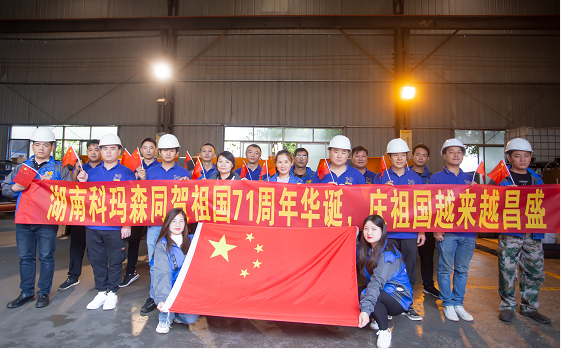 2020年10月1日是中華人民共和國(guó)成立71周年的日子,也是中華民族傳統(tǒng)的中秋佳節(jié),為了喜迎雙節(jié),湖南科瑪森機(jī)械制造有限公司全體同仁歡聚生產(chǎn)基地,共唱國(guó)歌及多首愛(ài)國(guó)歌曲,恭祝祖國(guó)興旺發(fā)達(dá),國(guó)泰民安,繁榮昌盛,燦爛輝煌!