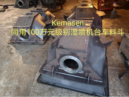 科瑪森優(yōu)化料斗內(nèi)腔,料斗體采用模具沖壓成型工藝,改善物料流動性,減少斗體內(nèi)混凝土積料,提高吸料效率,不挑料,多種高難度混凝土輕松應對。與傳統(tǒng)料斗相比減少拼焊縫數(shù)量,提高料斗體焊接質(zhì)量,降低焊接對結(jié)構變形影響,在100萬元級濕噴機臺車上歷經(jīng)1000臺應用及考驗論證。