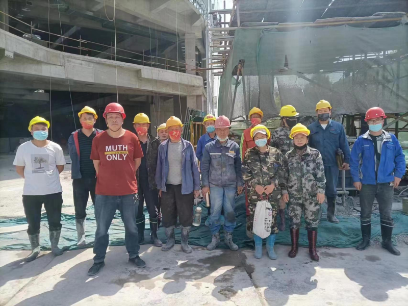 河南鄭州,郭總與他的地坪施工團隊完工后的合影,在他們身上我們看到了團結(jié)、責任和奮斗的身影